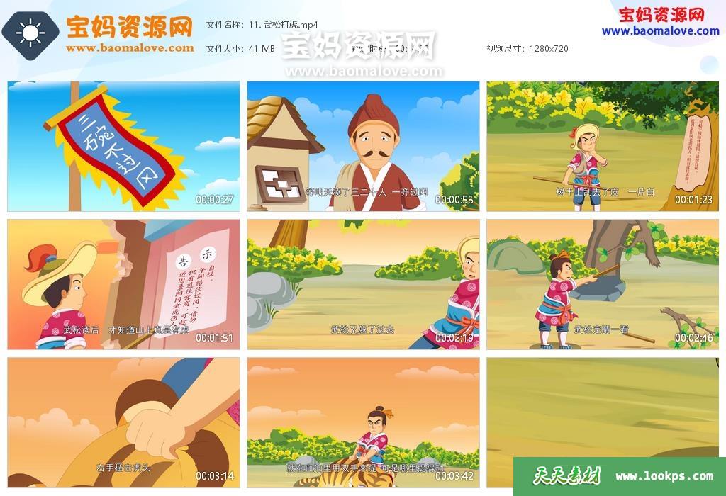天天资源网收录的动画片《中国绘本经典名著系列之手绘水浒》 ,全部20集,国语发音,中文字幕;每集大小约35M,资源总大小749M,单集播放时长约3~5分钟,720P高清MP4格式,可以在电视机或电脑、平板、IPAD、早教机、手机等各种设备播放,提供百度云网盘下载。