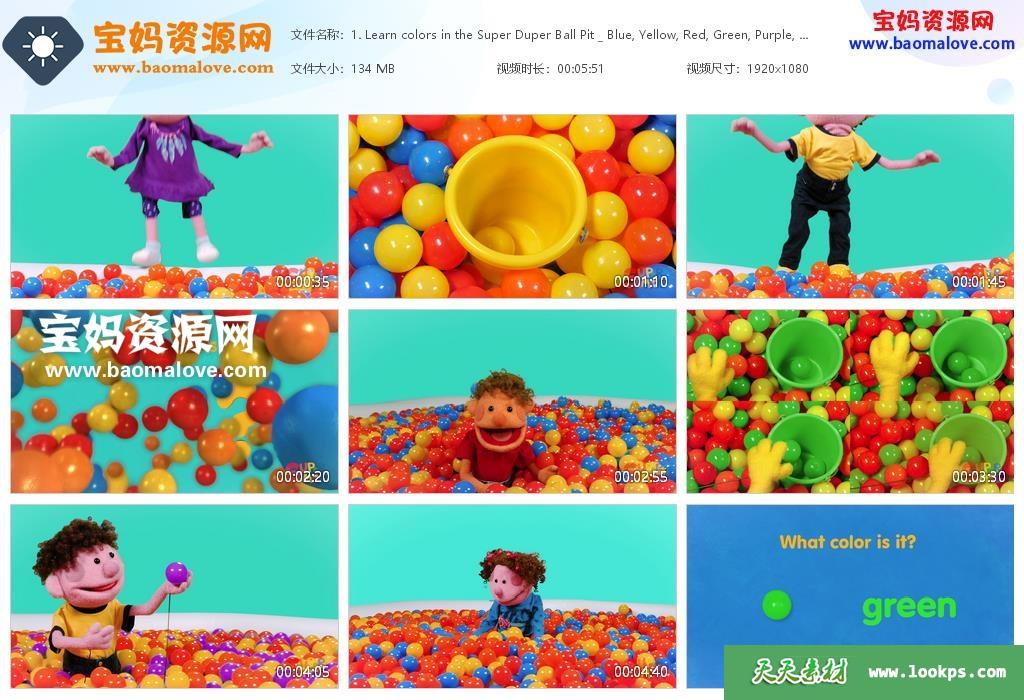 天天资源网收录的动画片《Super Duper Ball Pit》超级海洋球英文版,全部17集,英语发音,外挂英文字幕;每集大小约35M,资源总大小2.24G,单集播放时长约3~10分钟,1080P高清MP4格式,可以在电视机或电脑、平板、IPAD、早教机、手机等各种设备播放,提供百度云网盘下载。