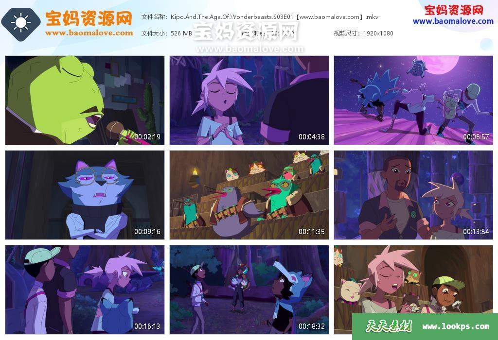 天天资源网收录的动画片《Kipo and the Age of Wonderbeasts》奇玻与幻兽的狂想纪元英文版 第三季,全部10集,英语发音,内置英文字幕(内置多国语言字幕西班牙文,简体中文,繁体中文,等,可下载后使用播放器选择设置字幕或者关闭字幕);每集大小约500M,资源总大小5.13G,单集播放时长约23分钟,1080P高清MKV格式,可以在电视机或电脑、平板、IPAD、早教机、手机等各种设备播放,提供百度云网盘下载。