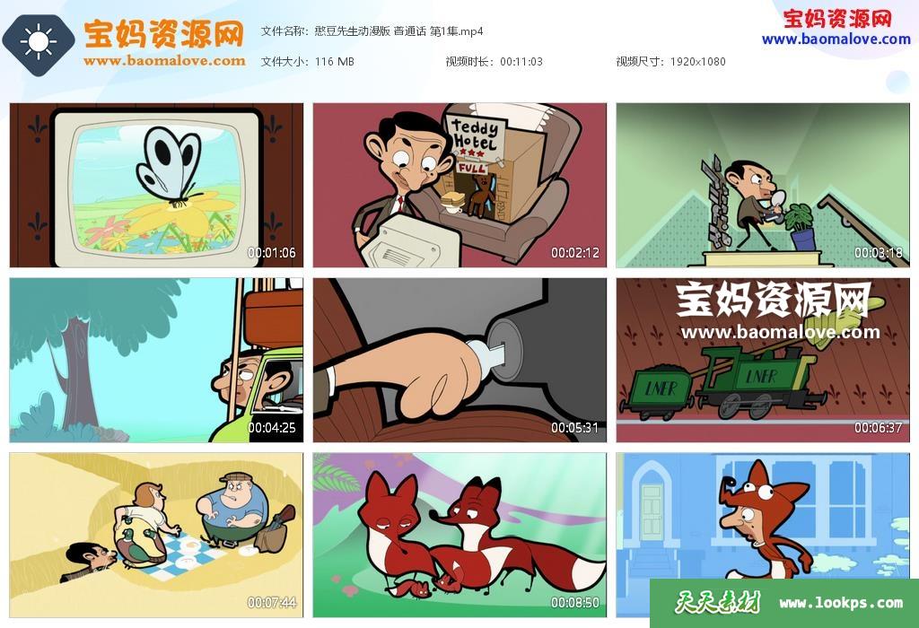 天天资源网收录的动画片《憨豆先生动画版》Mr. Bean: The Animated Series中文版 第一季,全部52集,国语发音,无字幕;每集大小约65M,资源总大小3.49G,单集播放时长约11分钟,1080P高清MP4格式,可以在电视机或电脑、平板、IPAD、早教机、手机等各种设备播放,提供百度云网盘下载。