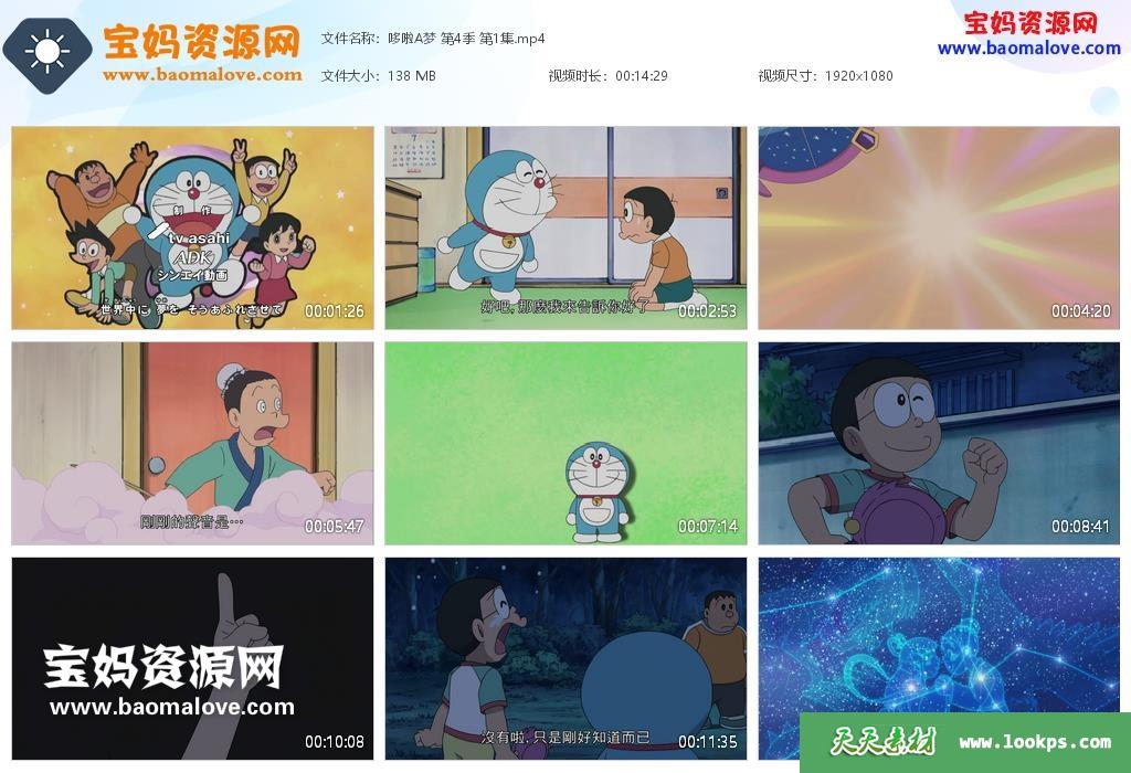 天天资源网收录的动画片《哆啦A梦》第四季,全部104集,国语发音,中文字幕;每集大小约150M,资源总大小22.5G,单集播放时长约13分钟,1080P高清MP4格式,可以在电视机或电脑、平板、IPAD、早教机、手机等各种设备播放,提供百度云网盘下载。