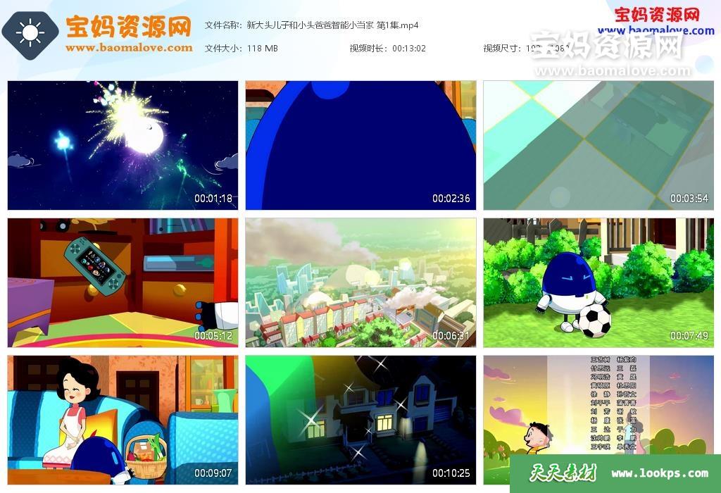天天资源网收录的动画片《新大头儿子和小头爸爸智能小当家》,全部100集,国语发音,无字幕;每集大小约85M,资源总大小8.77G,单集播放时长约13分钟,1080P高清MP4格式,可以在电视机或电脑、平板、IPAD、早教机、手机等各种设备播放,提供百度云网盘下载。