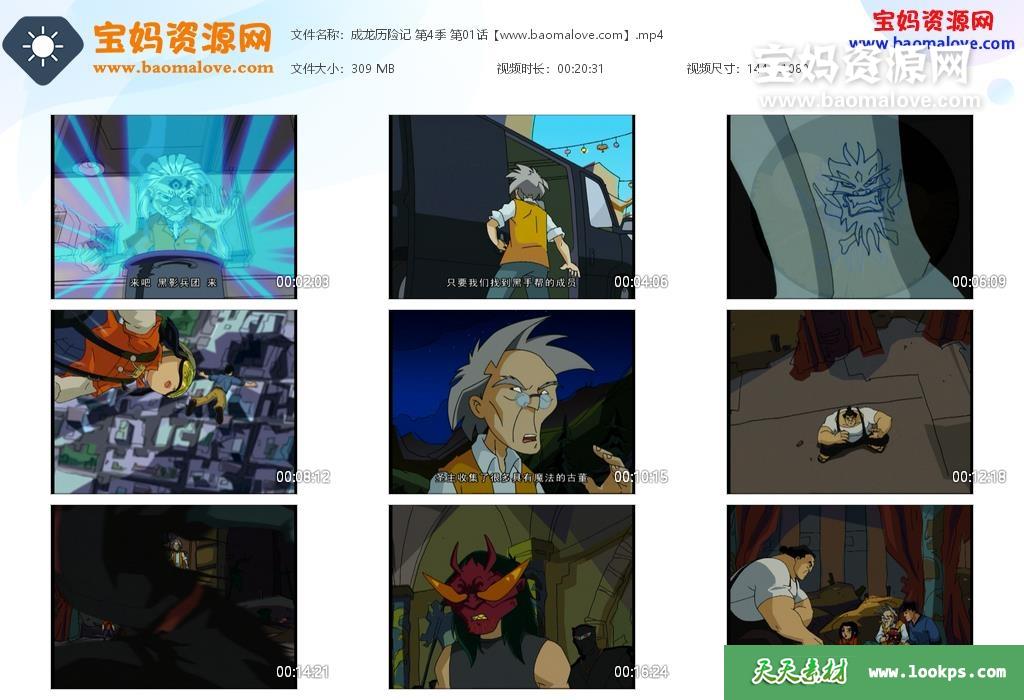 天天资源网收录的动画片《成龙历险记》Jackie Chan Adventures中文版 第四季,全部13集,国语发音,中文字幕;每集大小约265M,资源总大小3.25G,单集播放时长约20分钟,1080P高清MP4格式,可以在电视机或电脑、平板、IPAD、早教机、手机等各种设备播放,提供百度云网盘下载。