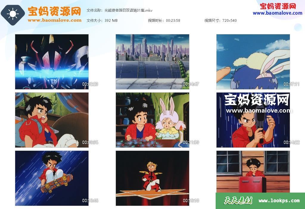 天天资源网收录的动画片《魔动王/光能使者》,全部41集,国日双语发音,无字幕;每集大小约390M,资源总大小15.9G,单集播放时长约24分钟,540P标清MKV格式,可以在电视机或电脑、平板、IPAD、早教机、手机等各种设备播放,提供百度云网盘下载。