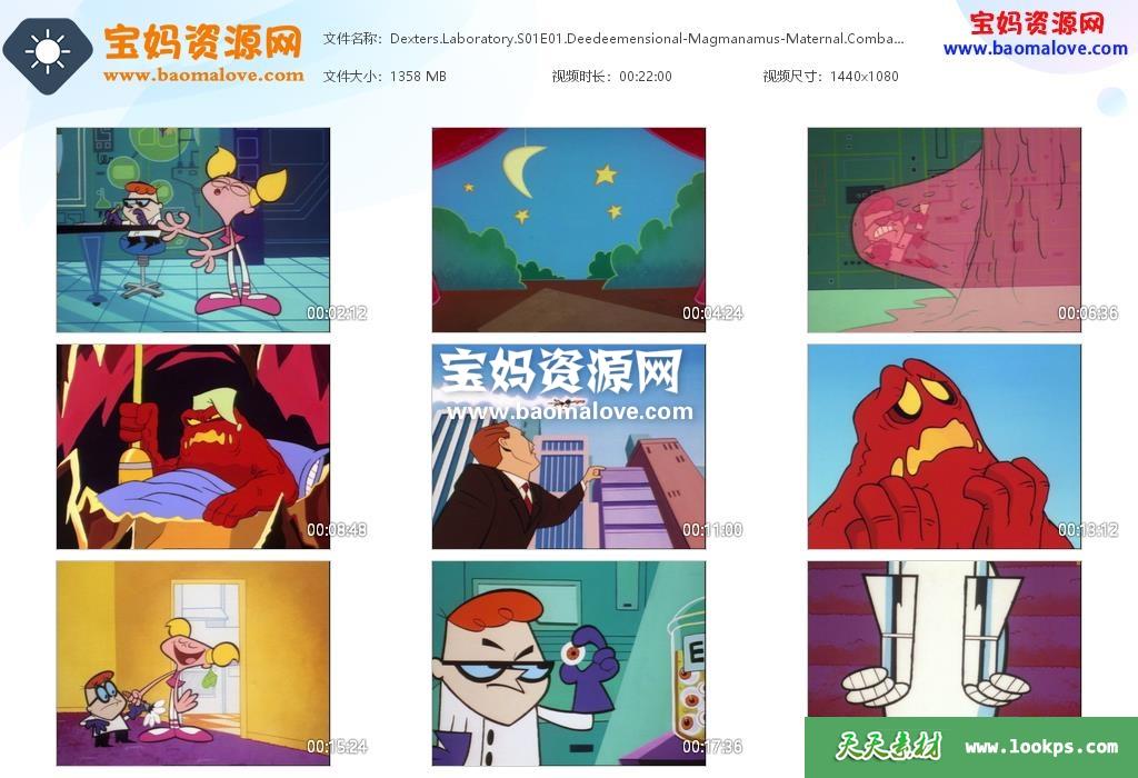 天天资源网收录的动画片《Dexter’s Laboratory》德克斯特的实验室英文版 第一季,全部38集,英语发音,内置英文字幕(可以下载后使用播放器选择设置字幕或者关闭字幕);资源总大小17.3G,单集播放时长约7分钟,1080P高清MKV格式,可以在电视机或电脑、平板、IPAD、早教机、手机等各种设备播放,提供百度云网盘下载。
