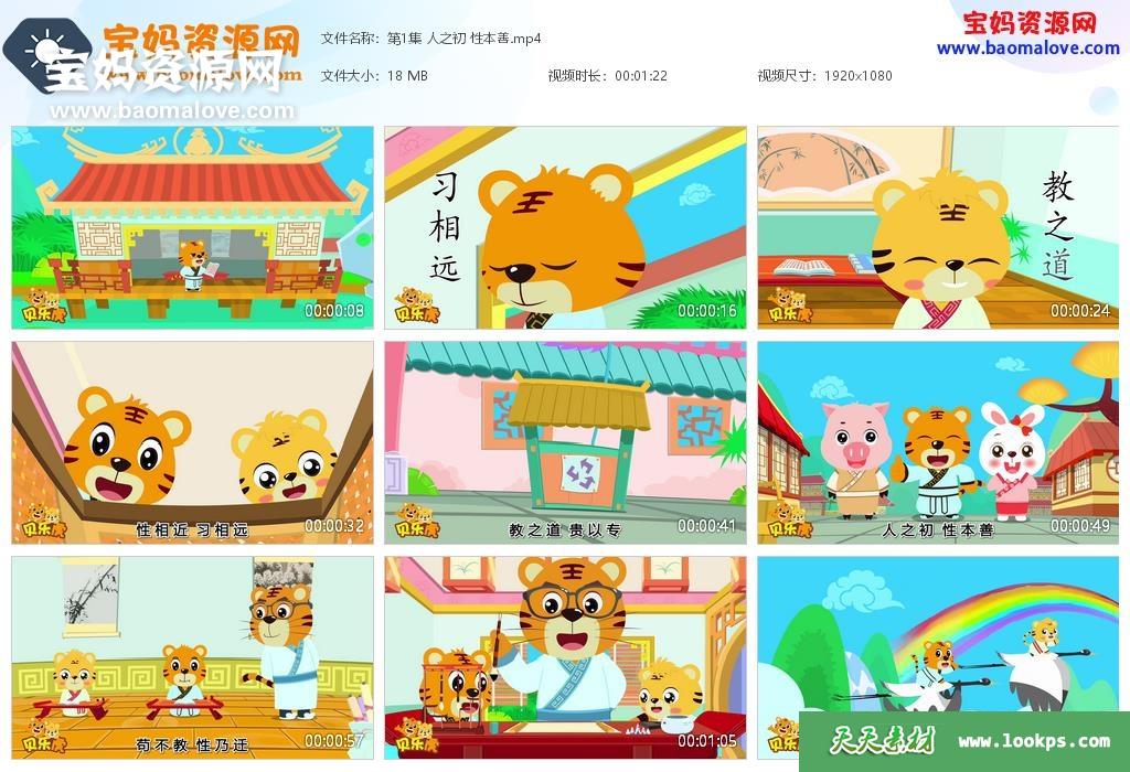 天天资源网收录的动画片《贝乐虎三字经》,全部20集,国语发音,中文字幕;每集大小约19M,总大小395M,单集播放时长约1~2分钟,1080P高清MP4格式,可以在电视机或电脑、平板、IPAD、早教机、手机等各种设备播放,提供百度云网盘下载。