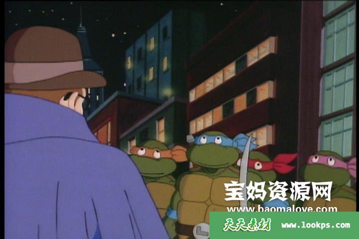 这是一部经典的美国的动画片。一天,一家工厂泄漏的有毒化学物质流到了纽约市的地下水道,这些化学物质令到四只平凡的小海龟发生了基因突变,变成了像人一样能站立行走的人形海龟,他们分别是米开朗基罗、达芬奇、拉斐尔和多纳泰罗,而一位忍术了得的日本忍者斯普林特也因为接触到这些物质而 变成了一只人形的老鼠。海龟们拜斯普林特为师傅,学习忍术和功夫,并在电视台记者范宝儿和爱玛的帮助下,与住在地层地下企图统治世界的克朗和他爪牙施莱德展开了一场又一场斗争。