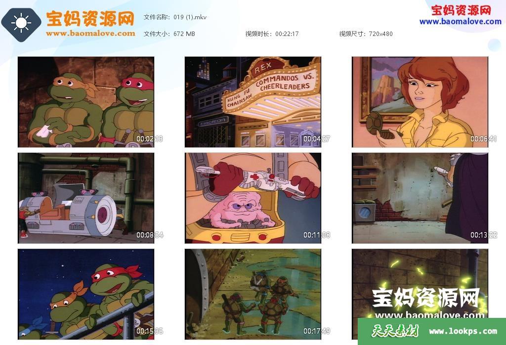 天天资源网收录的动画片《忍者神龟 Teenage Mutant Ninja Turtles》第三季,全部47集,国英双语发音,无字幕;每集大小650M,资源总大小30G,单集播放时长约22分钟,480P标清MKV格式,可以在电视机或电脑、平板、IPAD、早教机、手机等各种设备播放,提供百度云网盘下载。