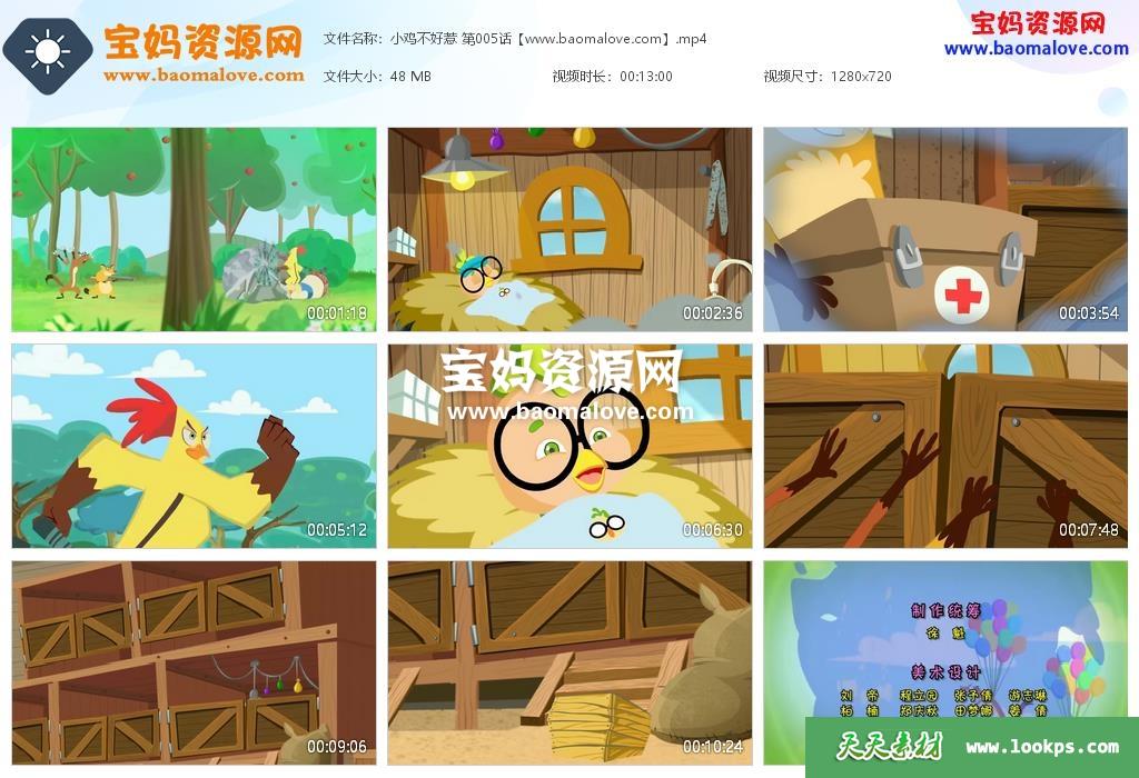 天天资源网收录的动画片《小鸡不好惹》,全部418集,国语发音,无字幕;每集大小约60M,资源总大小26.7G,单集播放时长约13分钟,720P高清MP4格式,可以在电视机或电脑、平板、IPAD、早教机、手机等各种设备播放,提供百度云网盘下载。