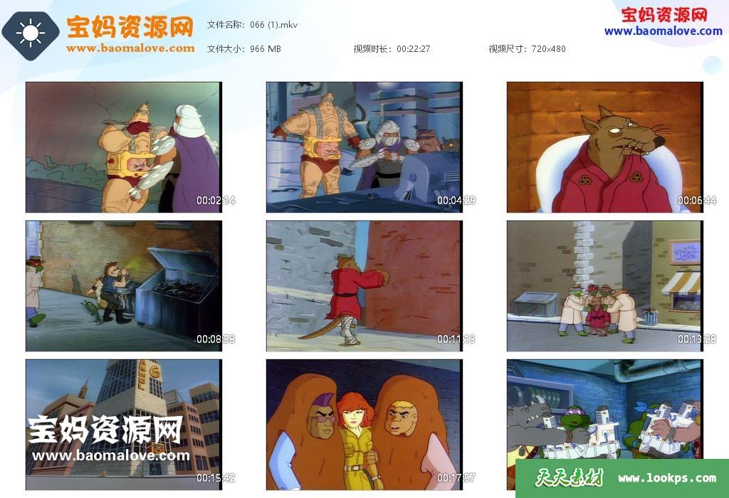 天天资源网收录的动画片《忍者神龟 Teenage Mutant Ninja Turtles》第四季,全部39集,国英双语发音,无字幕;每集大小900M,资源总大小35.3G,单集播放时长约22分钟,480P标清MKV格式,可以在电视机或电脑、平板、IPAD、早教机、手机等各种设备播放,提供百度云网盘下载。