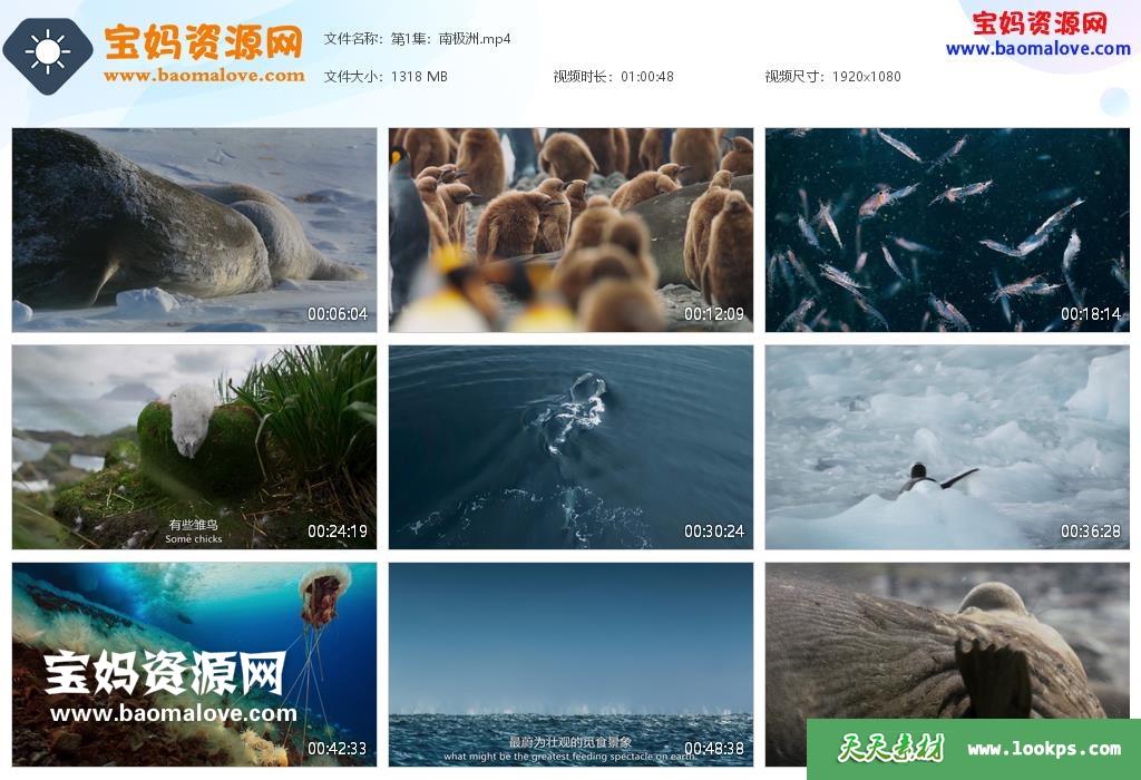 天天资源网收录的纪录片《七个世界,一个星球》Seven Worlds, One Planet中文版,全部7集,国语发音,中英文字幕;每集大小约1.26G,资源总大小8.78G,单集播放时长约60分钟,1080P高清MP4格式,可以在电视机或电脑、平板、IPAD、早教机、手机等各种设备播放,提供百度云网盘下载。