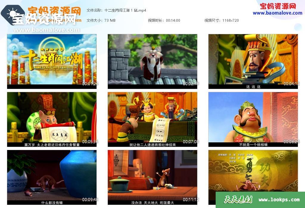 天天资源网收录的动画片《生肖传奇之十二生肖闯江湖》,全部52集,国语发音,中文字幕;每集大小约90M,资源总大小5.2G,单集播放时长约14分钟,720P高清MP4格式,可以在电视机或电脑、平板、IPAD、早教机、手机等各种设备播放,提供百度云网盘下载。