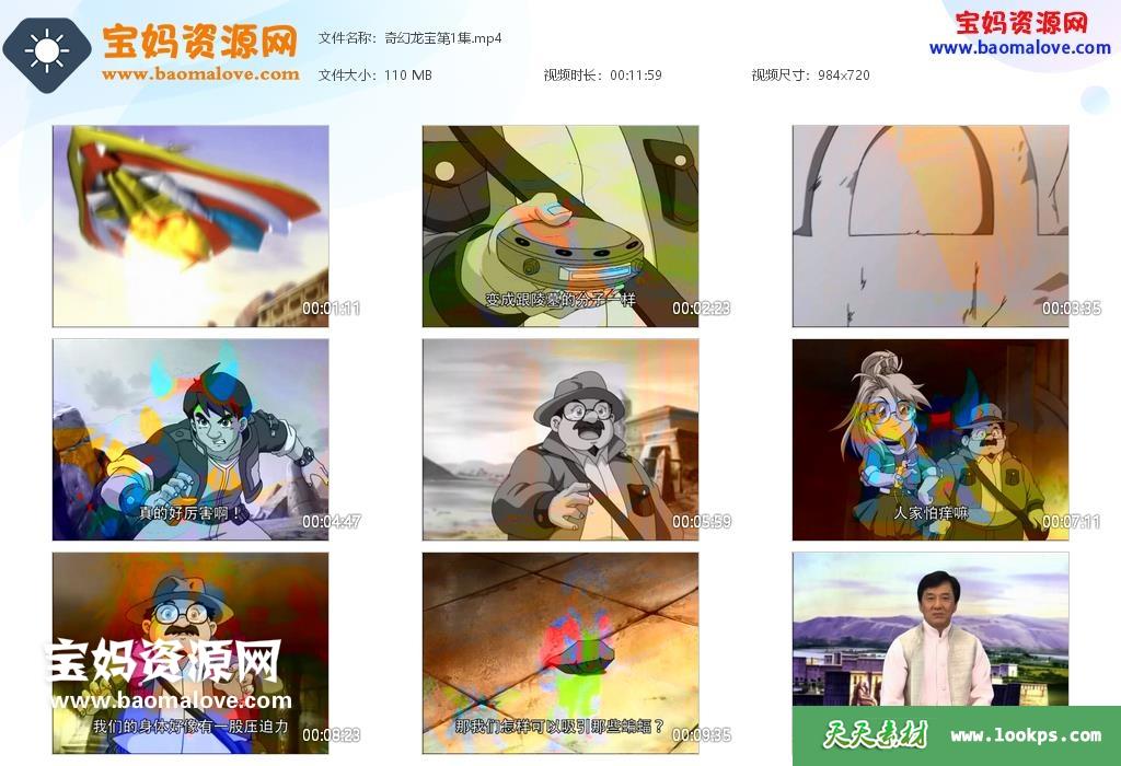 天天资源网收录的动画片《奇幻龙宝》,全部52集,国语发音,中文字幕;每集大小约100M,资源总大小5.26G,单集播放时长约12分钟,720P高清MP4格式,可以在电视机或电脑、平板、IPAD、早教机、手机等各种设备播放,提供百度云网盘下载。