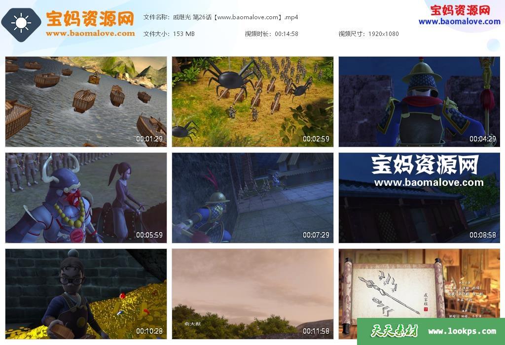 天天资源网收录的动画片《戚继光》,全部26集,国语发音,中文字幕;每集大小约135M,资源总大小3.55G,单集播放时长约13分钟,1080P高清MP4格式,可以在电视机或电脑、平板、IPAD、早教机、手机等各种设备播放,提供百度云网盘下载。