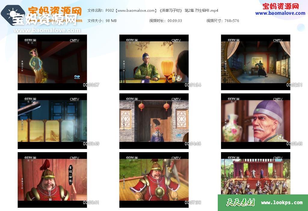 天天资源网收录的动画片《英雄冯子材》,全部10集,国语发音,无字幕;每集大小约100M,资源总大小1G,单集播放时长约10分钟,576P标清MP4格式,可以在电视机或电脑、平板、IPAD、早教机、手机等各种设备播放,提供百度云网盘下载。