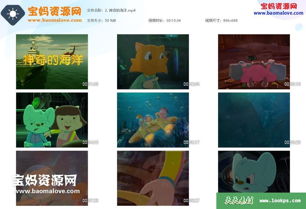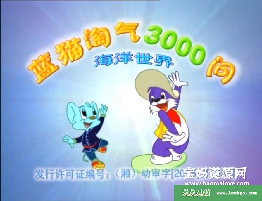 天天资源网收录的动画片《蓝猫淘气3000问之海洋世界》,全部312集,国语发音,无字幕;每集大小约55M,资源总大小18.3G,单集播放时长约10分钟,504P标清MP4格式,可以在电视机或电脑、平板、IPAD、早教机、手机等各种设备播放,提供百度云网盘下载。