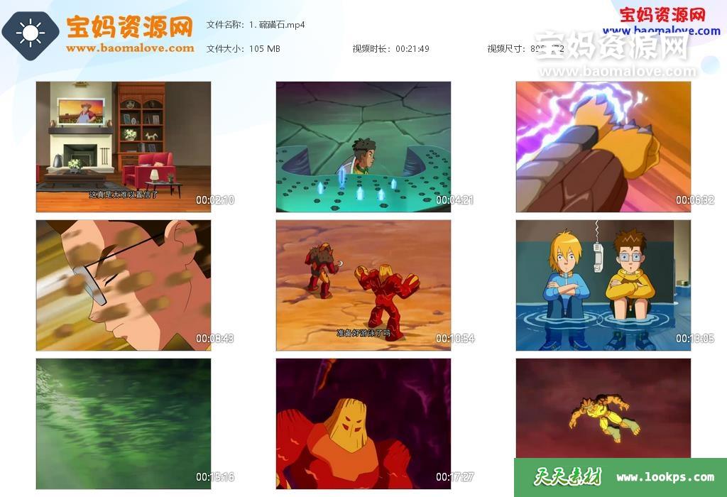 天天资源网收录的动画片《高米迪》Gormiti: The Lords of Nature Return!中文版 ,全部52集,国语发音,中文字幕;每集大小约95M,资源总大小5G,单集播放时长约22分钟,672P标清MP4格式,可以在电视机或电脑、平板、IPAD、早教机、手机等各种设备播放,提供百度云网盘下载。