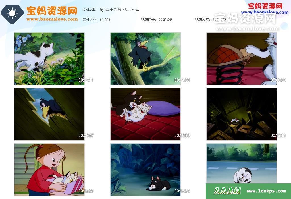 天天资源网收录的动画片《小贝流浪记》,全部10集,国语发音,无字幕;每集大小约81M,资源总大小815M,单集播放时长约22分钟,720P高清MP4格式,可以在电视机或电脑、平板、IPAD、早教机、手机等各种设备播放,提供百度云网盘下载。