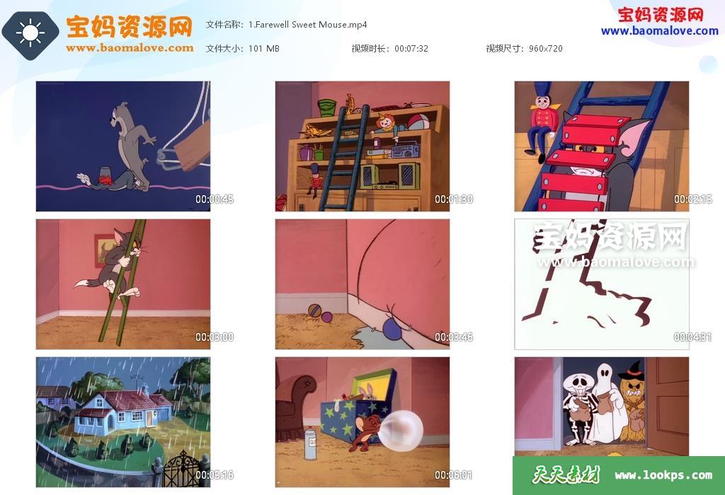 天天资源网收录的动画片《The Tom and Jerry Comedy Show》汽车学校英文版,全部37集,英语发音,无字幕;每集大小约70M,资源总大小2.78G,单集播放时长约7分钟,720P高清MP4格式,可以在电视机或电脑、平板、IPAD、早教机、手机等各种设备播放,提供百度云网盘下载。