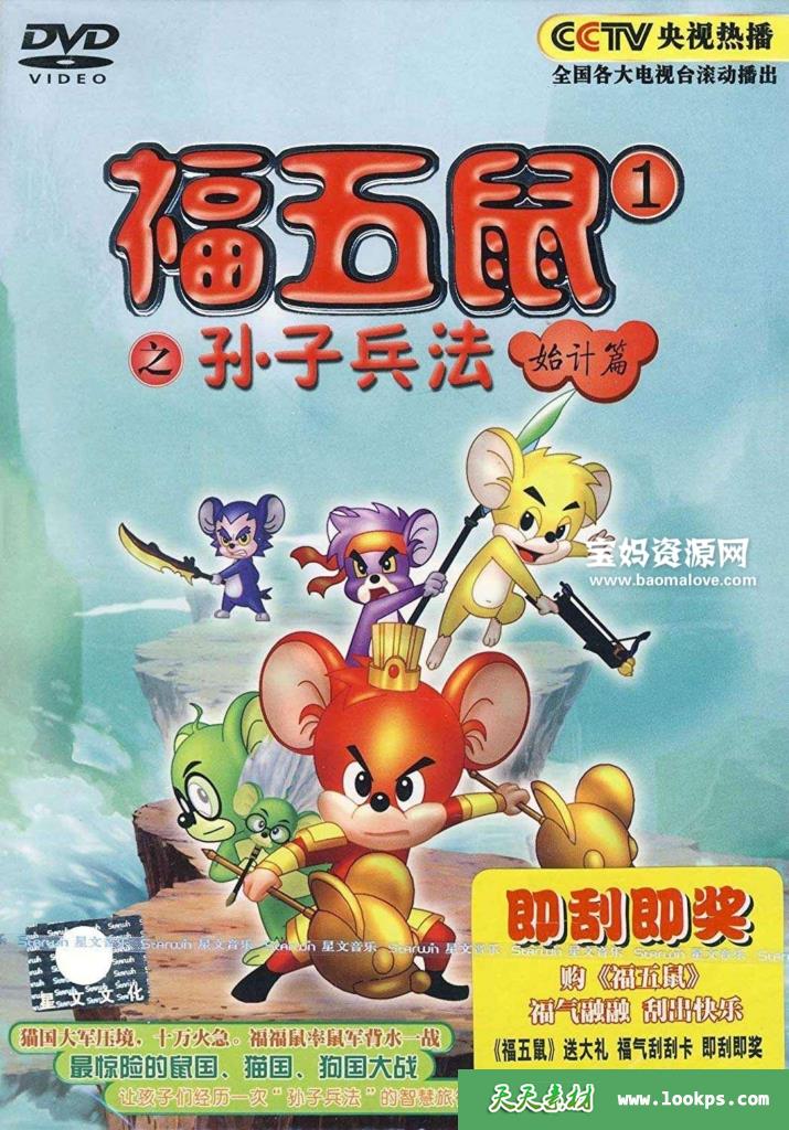 天天资源网收录的动画片《福五鼠之孙子兵法》,全部26集,国语发音,中文字幕;每集大小约120M,资源总大小3.48G,单集播放时长约18分钟,720P高清MP4格式,可以在电视机或电脑、平板、IPAD、早教机、手机等各种设备播放,提供百度云网盘下载。