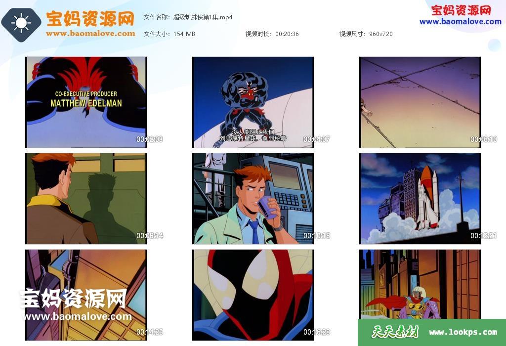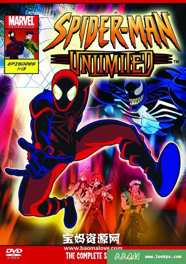 天天资源网收录的动画片《超级蜘蛛侠》Spider-Man Unlimited中文版,全部13集,国语发音,中文字幕;每集大小约150M,资源总大小2.05G,单集播放时长约20分钟,720P高清MP4格式,可以在电视机或电脑、平板、IPAD、早教机、手机等各种设备播放,提供百度云网盘下载。