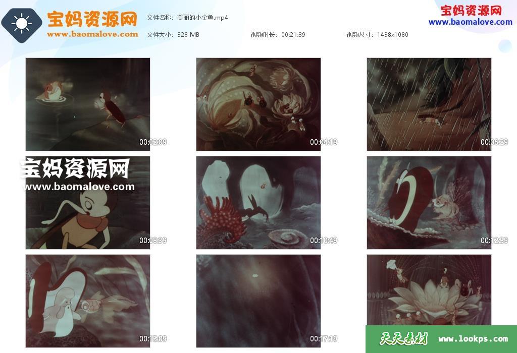 天天资源网收录的动画电影《美丽的小金鱼》,国语发音,无字幕;资源大小约328M,播放时长约21分钟,1080P高清MP4格式,可以在电视机或电脑、平板、IPAD、早教机、手机等各种设备播放,提供百度云网盘下载。