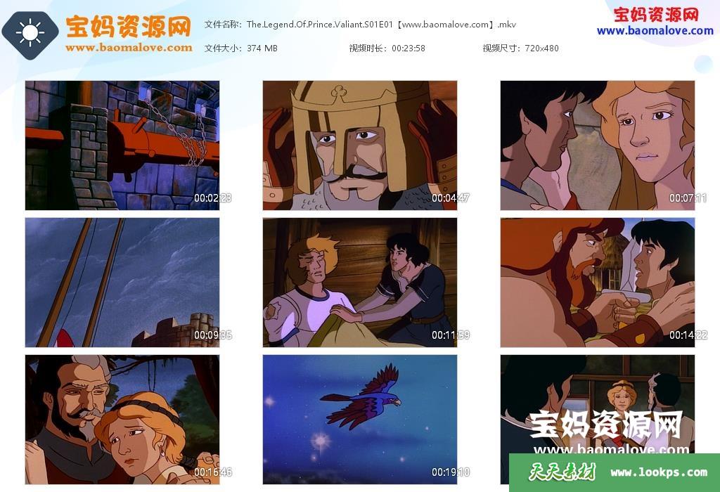 天天资源网收录的动画片《The Legend of Prince Valiant》瓦利安特王子传奇英文版 第一季,全部26集,英语发音,内置英文字幕(可下载后使用播放器选择设置字幕或者关闭字幕);每集大小380M,资源总大小10.4G,单集播放时长约24分钟,480P标清MKV格式,可以在电视机或电脑、平板、IPAD、早教机、手机等各种设备播放,提供百度云网盘下载。