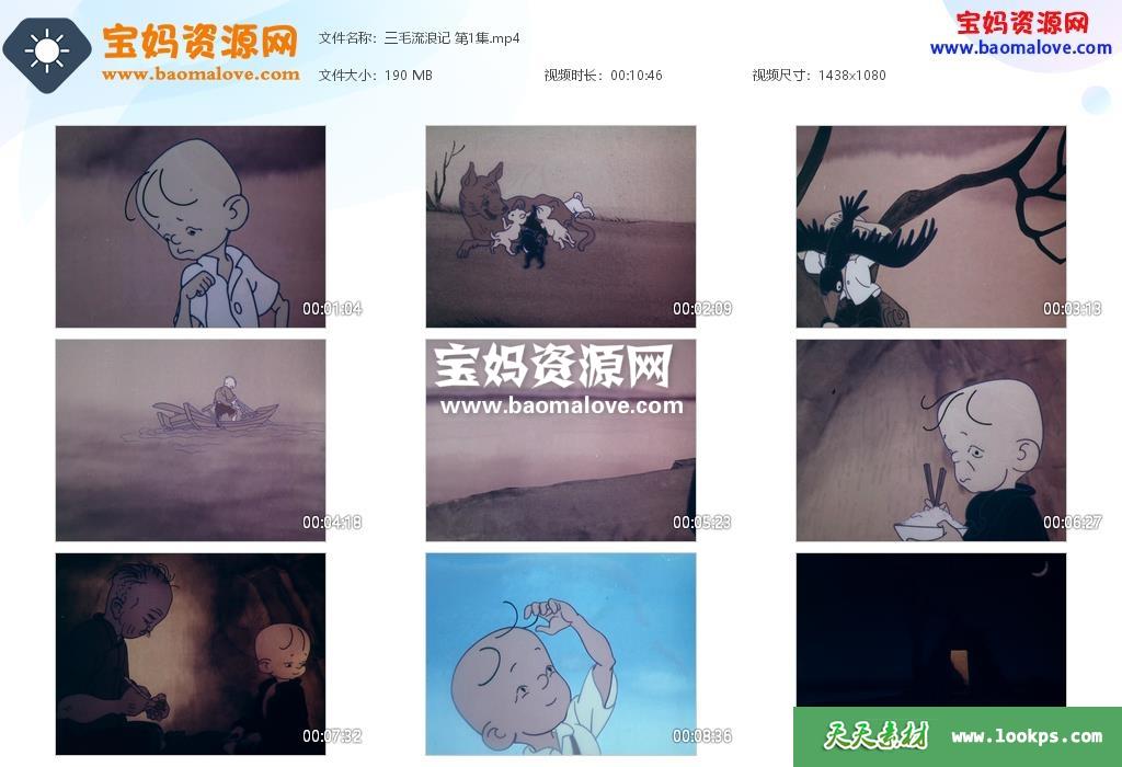 天天资源网收录的动画片《三毛流浪记》 ,全部4集,默片无对白,无字幕;每集大小约170M,资源总大小750M,单集播放时长约10分钟,1080P高清MP4格式,可以在电视机或电脑、平板、IPAD、早教机、手机等各种设备播放,提供百度网盘下载。
