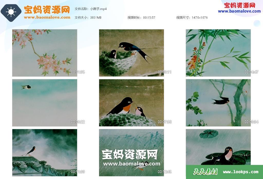 天天资源网收录的动画电影《小燕子》,国语发音,无字幕;资源大小约383M,播放时长约15分钟,1080P高清MP4格式,可以在电视机或电脑、平板、IPAD、早教机、手机等各种设备播放,提供百度云网盘下载。