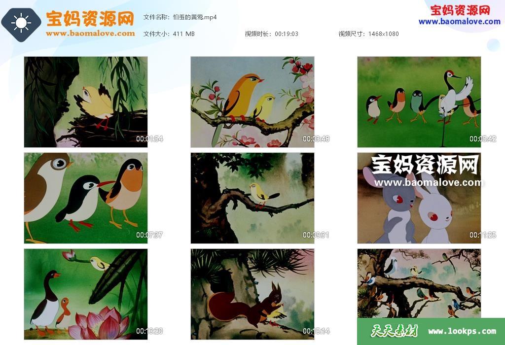 天天资源网收录的动画电影《怕羞的黄莺》,国语发音,无字幕;资源大小约411M,播放时长约19分钟,1080P高清MP4格式,可以在电视机或电脑、平板、IPAD、早教机、手机等各种设备播放,提供百度云网盘下载。