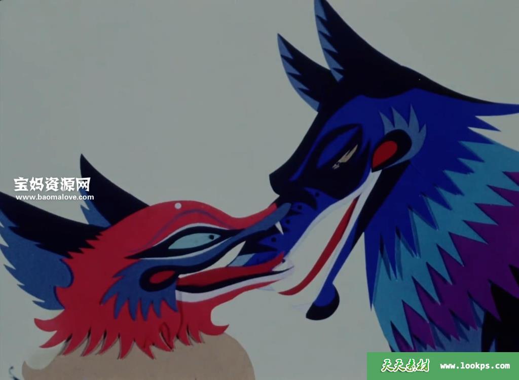 顶天山上一张画在壁上的狐狸被道听图说成一只活生生的长有两颗大牙、三只眼睛、四个耳朵和五条腿的凶狠的恶狼,所有动物都吓得躲进自己的家,这个消息传入狡猾的狐狸的耳朵后,他找来老狼商议,装扮成为那只传说中的凶狠的狼。年轻的猎人也被恶狼的传说吓得躲进了被窝,可是为了吃饭,他终抱着侥幸的心理出门打猎,结果怕什么来什么,一声奇怪的叫声令他吓破了胆,“凶狠的狼”的现身更令他丢了猎枪,自此,噩梦缠上了他,他成了不配做猎人的胆小鼠辈。