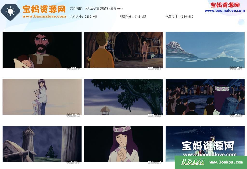 天天资源网收录的动画电影《太阳王子霍尔斯的大冒险》,国台日语发音,中文字幕;资源大小约2.18G,880P高清MKV格式,可以在电视机或电脑、平板、IPAD、早教机、手机等各种设备播放,提供百度云网盘下载。