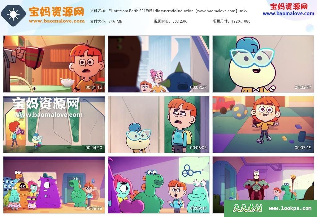 天天资源网收录的动画片《Elliott from Earth》地球上的艾略特英文版 第一季,全部16集,英语发音,内置英文字幕(可以下载后使用播放器选择字幕或者关闭字幕);每集大小约740M,资源总大小11.4G,单集播放时长约12分钟,1080P高清MKV格式,可以在电视机或电脑、平板、IPAD、早教机、手机等各种设备播放,提供百度云网盘下载。