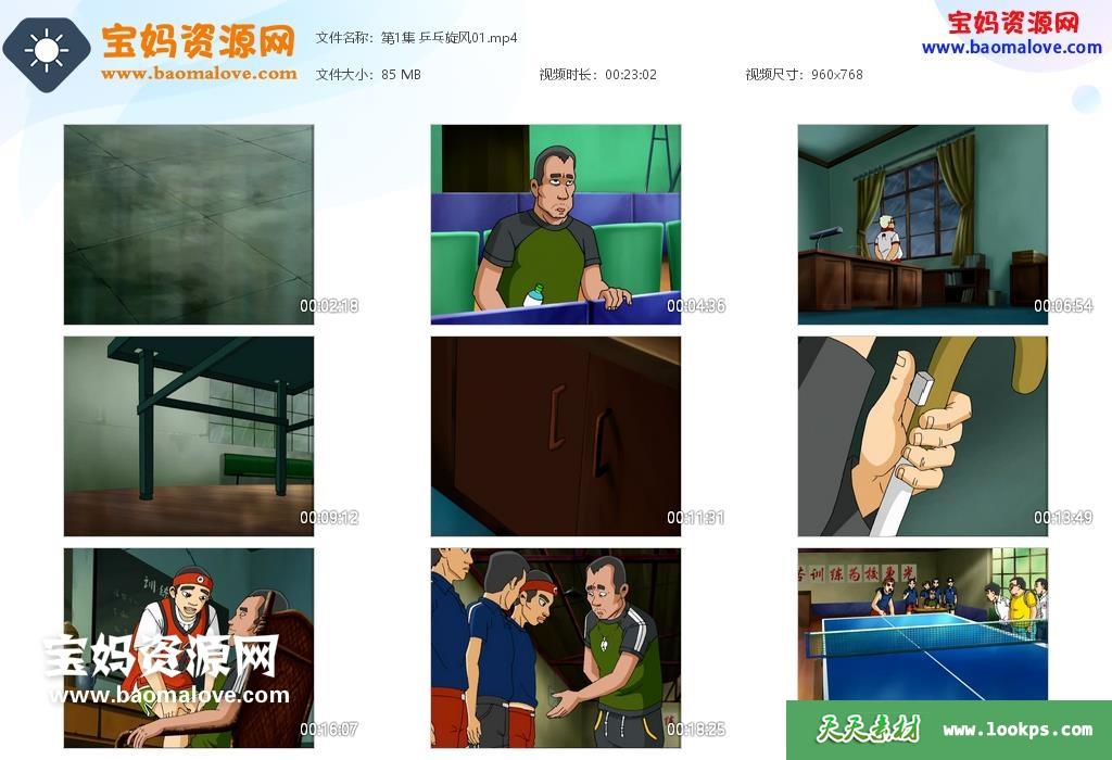 天天资源网收录的动画片《乒乓旋风》,全部26集,国语发音,无字幕;每集大小约76M,资源总大小2.1G,单集播放时长约23分钟,768P高清MP4格式,可以在电视机或电脑、平板、IPAD、早教机、手机等各种设备播放,提供百度云网盘下载。
