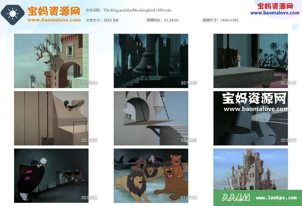 天天资源网收录的动画电影《国王与小鸟 1980》,上译国语/法语发音,内置简体中文,繁体中文,法文字幕(可以下载后使用播放器选择字幕或者关闭字幕);资源大小约3.73G,1080P高清MKV格式,可以在电视机或电脑、平板、IPAD、早教机、手机等各种设备播放,提供百度云网盘下载。