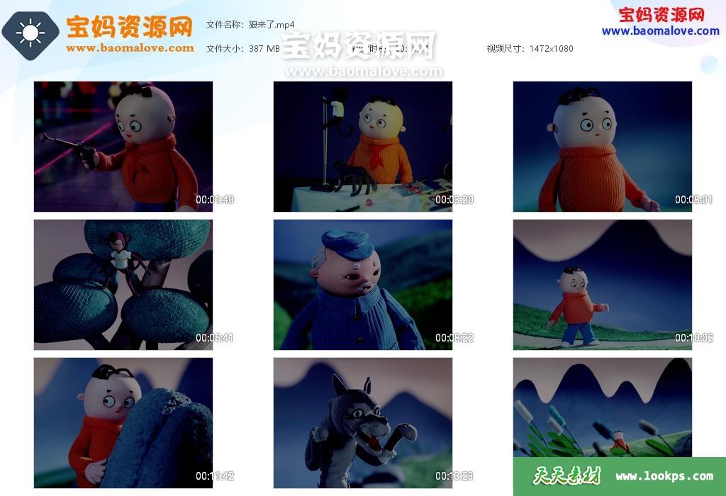 天天资源网收录的动画电影《狼来了》,国语发音,无字幕;资源大小约387M,播放时长约17分钟,1080P高清MP4格式,可以在电视机或电脑、平板、IPAD、早教机、手机等各种设备播放,提供百度云网盘下载。