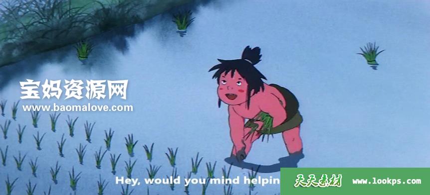 在去的路上,太郎的青梅竹马的阿雅(富永みーな 配音)被黑鬼(北村和夫 配音)抓走,太郎打败黑鬼,救出了阿彩。一直被黑鬼骚扰的村人非常感激太郎,请他美餐了一顿。太郎吃着自己从来没吃过的喷香的米饭,流下了眼泪,他多么希望自己家乡的人们也能吃上这样的米饭啊。村人还将一面镜子和日行百里的马驹送给太郎作为谢礼,太郎将宝物转赠阿雅,让她先回家,自己继续踏上了旅途。太郎在山里遇到大雪,遭雪女袭击失去了意识,太郎能突破重重险阻找到母亲吗……