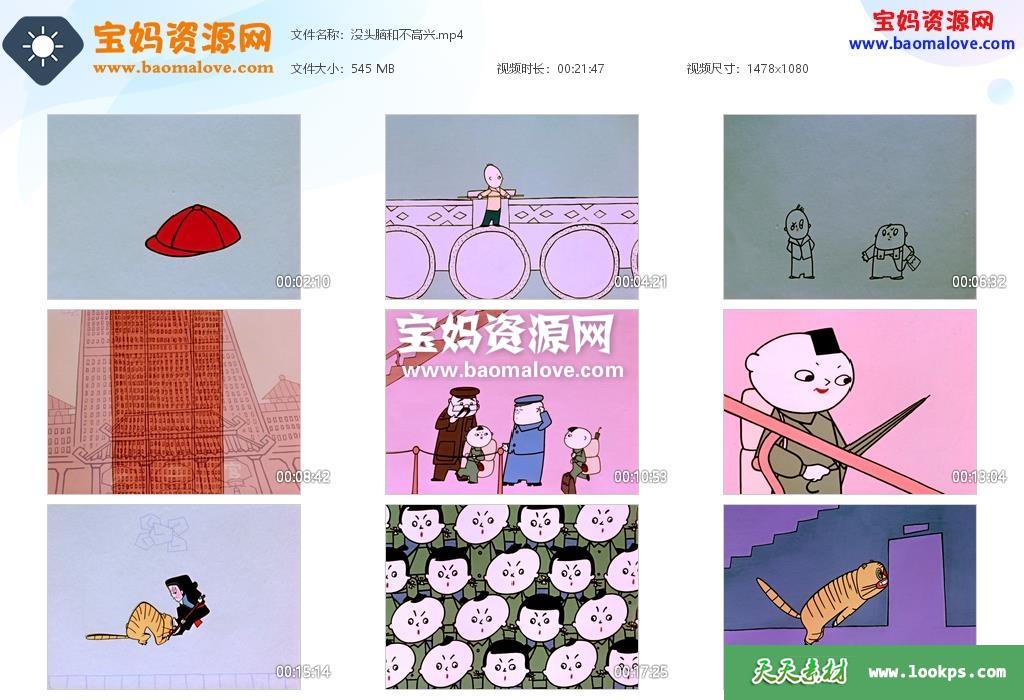 天天资源网收录的动画电影《没头脑和不高兴》,国语发音,无字幕;资源大小约545M,播放时长约22分钟,1080P高清MP4格式,可以在电视机或电脑、平板、IPAD、早教机、手机等各种设备播放,提供百度云网盘下载。