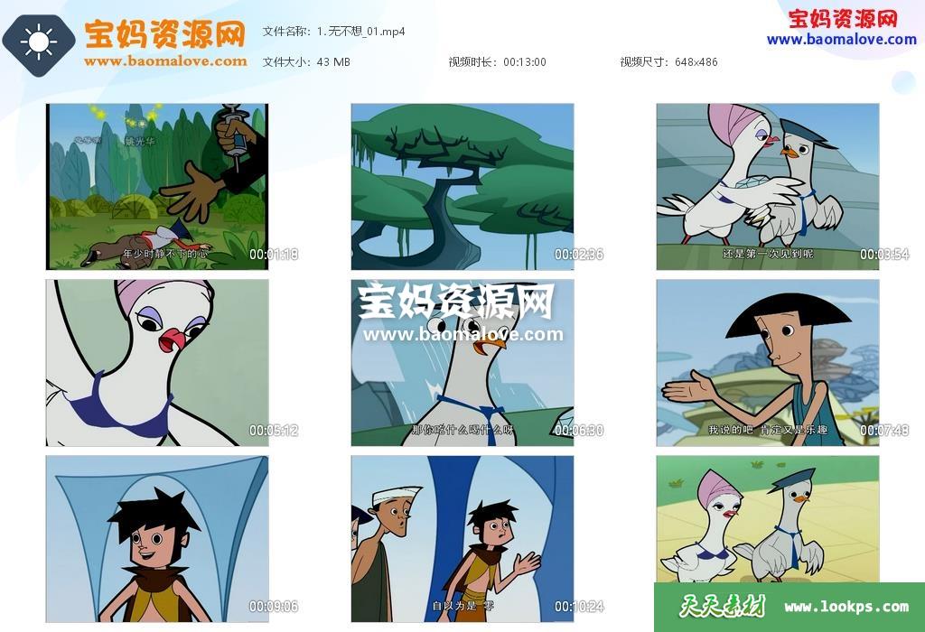 天天资源网收录的动画片《无不想》,全部52集,国语发音,中文字幕;每集大小约43M,资源总大小2.46G,单集播放时长约13分钟,486P标清MP4格式,可以在电视机或电脑、平板、IPAD、早教机、手机等各种设备播放,提供百度云网盘下载。