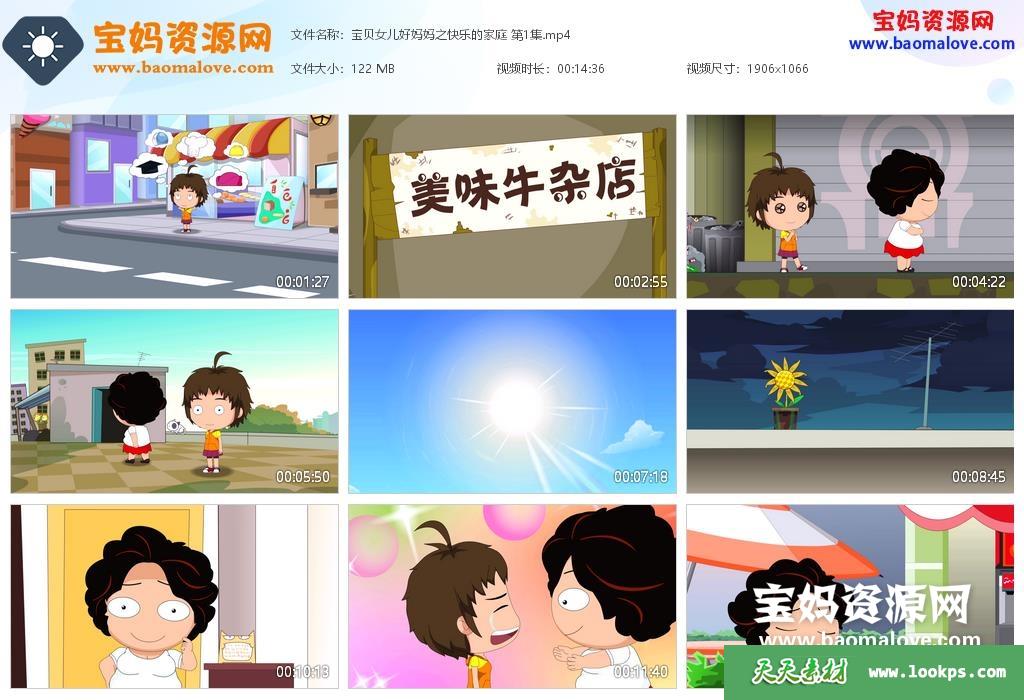 天天资源网收录的动画片《宝贝女儿好妈妈之快乐的家庭》,全部100集,国语发音,中文字幕;每集大小约110M,资源总大小11.1G,单集播放时长约15分钟,1080P高清MP4格式,可以在电视机或电脑、平板、IPAD、早教机、手机等各种设备播放,提供百度云网盘下载。