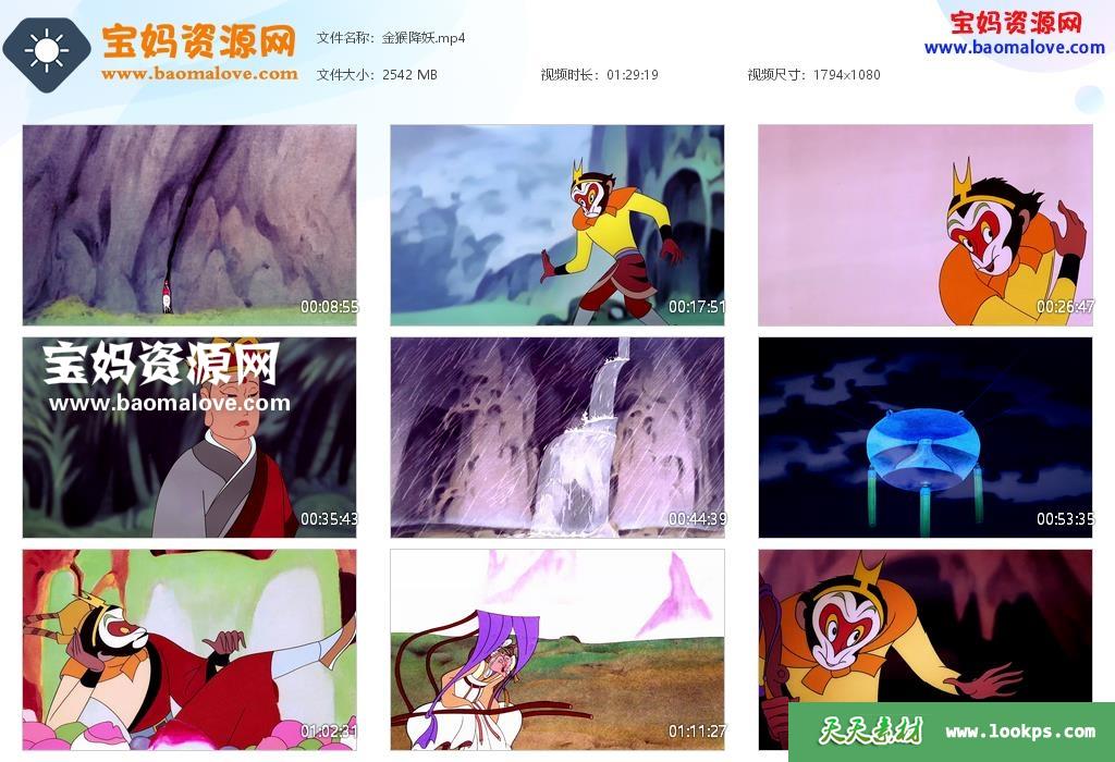 天天资源网收录的动画电影《金猴降妖》,国语发音,无字幕;资源大小约2.48G,播放时长约90分钟,1080P高清MP4格式,可以在电视机或电脑、平板、IPAD、早教机、手机等各种设备播放,提供百度云网盘下载。