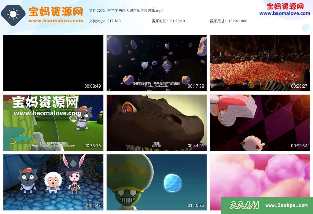 天天资源网收录的动画电影《喜羊羊与灰太狼之兔年顶呱呱》,国语发音,中英文字幕;资源大小约917M,播放时长约88分钟,1080P高清MP4格式,可以在电视机或电脑、平板、IPAD、早教机、手机等各种设备播放,提供百度云网盘下载。