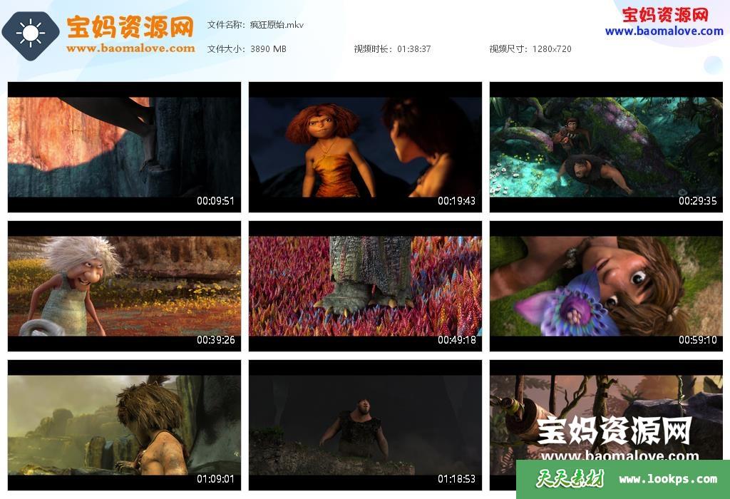 天天资源网收录的动画电影《疯狂原始人 The Croods》,国粤台英四语发音,中英文字幕;资源大小约3.79G,720P高清MKV格式,可以在电视机或电脑、平板、IPAD、早教机、手机等各种设备播放,提供百度云网盘下载。