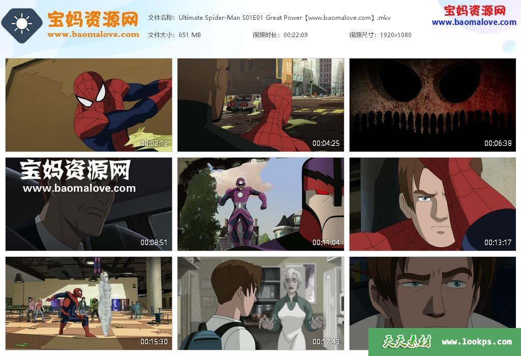 天天资源网收录的动画片《Ultimate Spider-Man》终极蜘蛛侠英文版 第一季,全部26集,英语发音,内置英文字幕(可以下载后使用播放器选择设置字幕或者关闭字幕);每集大小约650M,资源总大小18.1G,单集播放时长约22分钟,1080P高清MKV格式,可以在电视机或电脑、平板、IPAD、早教机、手机等各种设备播放,提供百度云网盘下载。