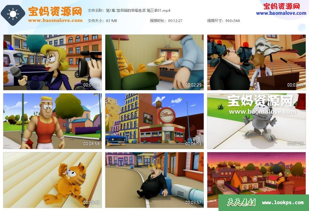 天天资源网收录的动画片《加菲猫的幸福生活》The Garfield Show中文版 第三季,全部52集,国语发音,无字幕;每集大小约70M,资源总大小2.2G,单集播放时长约12分钟,544P标清MP4格式,可以在电视机或电脑、平板、IPAD、早教机、手机等各种设备播放,提供百度云网盘下载。