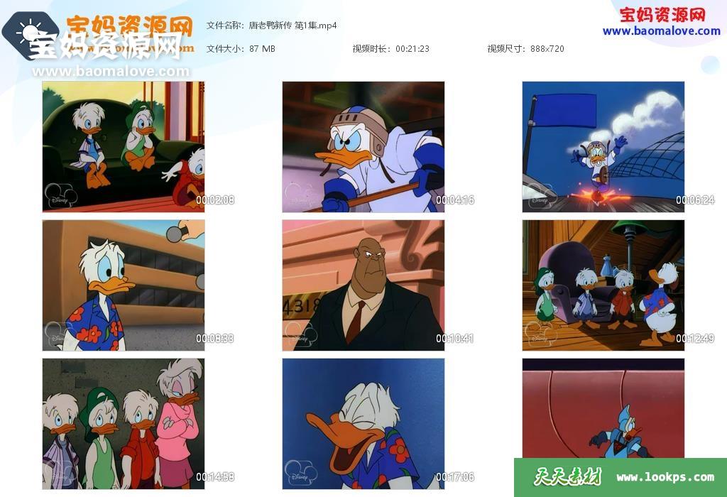 天天资源网收录的动画片《唐老鸭新传》Quack Pack中文版,全部39集,国语发音,无字幕;每集大小约80M,资源总大小3.36G,单集播放时长约22分钟,720P(一半504P)高清MP4格式,可以在电视机或电脑、平板、IPAD、早教机、手机等各种设备播放,提供百度云网盘下载。