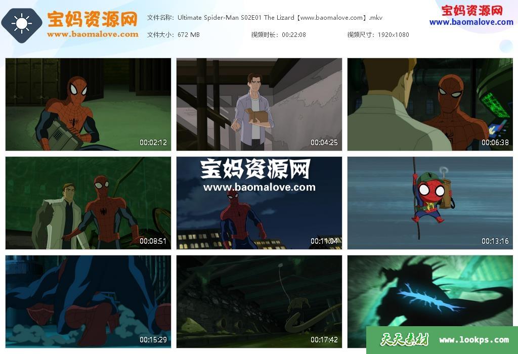 天天资源网收录的动画片《Ultimate Spider-Man》终极蜘蛛侠英文版 第二季,全部26集,英语发音,内置英文字幕(可以下载后使用播放器选择设置字幕或者关闭字幕);每集大小约650M,资源总大小18.4G,单集播放时长约22分钟,1080P高清MKV格式,可以在电视机或电脑、平板、IPAD、早教机、手机等各种设备播放,提供百度云网盘下载。