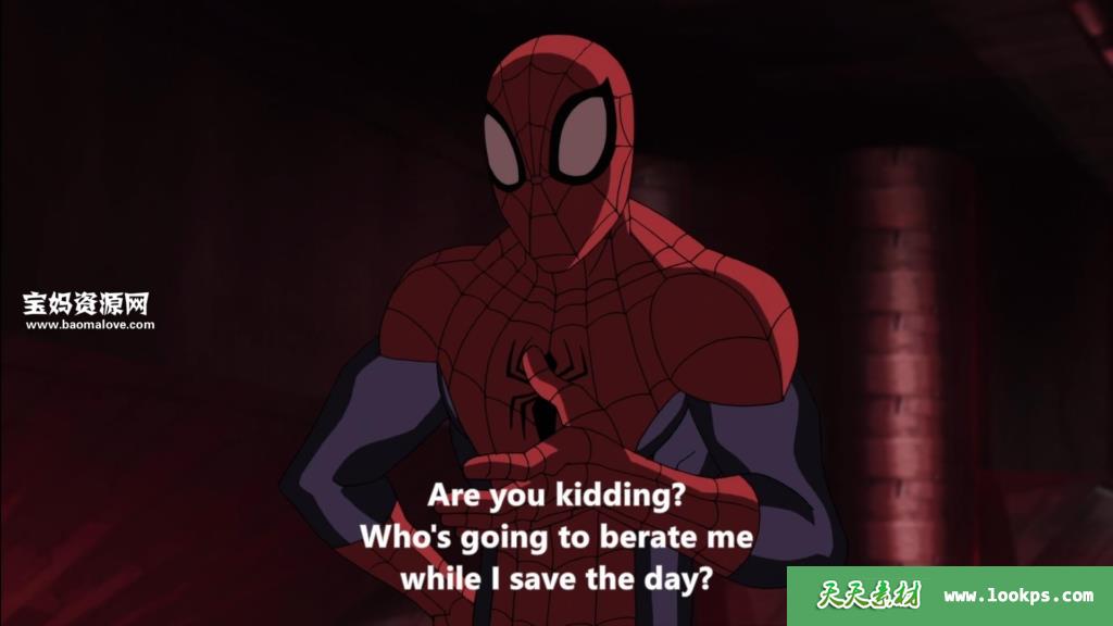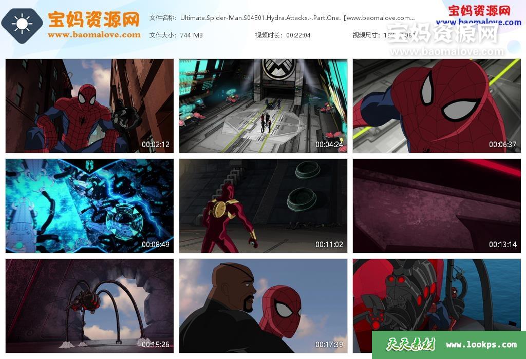 天天资源网收录的动画片《Ultimate Spider-Man》终极蜘蛛侠英文版 第四季,全部26集,英语发音,内置英文字幕(可以下载后使用播放器选择设置字幕或者关闭字幕);每集大小约670M,资源总大小17.6G,单集播放时长约22分钟,1080P高清MKV格式,可以在电视机或电脑、平板、IPAD、早教机、手机等各种设备播放,提供百度云网盘下载。