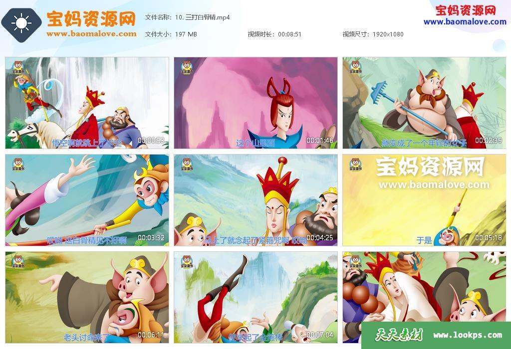 天天资源网收录的动画片《宝宝童书之西游记故事》 ,全部30集,国语发音,中文字幕;资源总大小3.25G,单集播放时长约8分钟,1080P高清MP4格式,可以在电视机或电脑、平板、IPAD、早教机、手机等各种设备播放,提供百度云网盘下载。