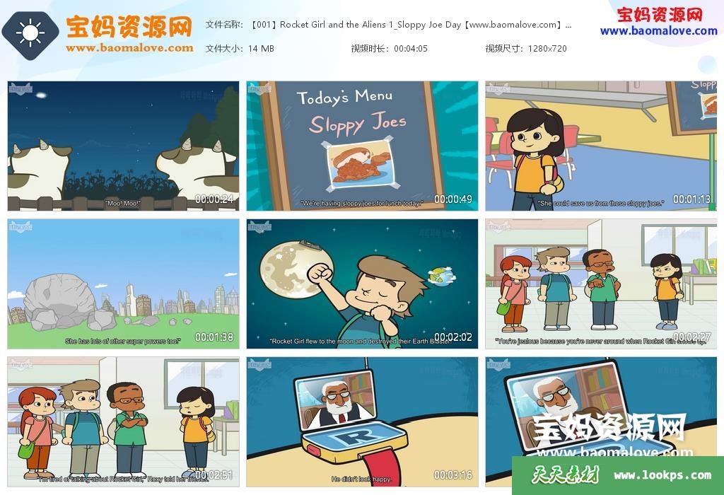 天天资源网收录的动画片《Rocket Girl》火箭女孩英文版,全部128集,英语发音,英文字幕;每集大小约15M,资源总大小2.27G,单集播放时长约4分钟,720P高清MP4格式,可以在电视机或电脑、平板、IPAD、早教机、手机等各种设备播放,提供百度云网盘下载。